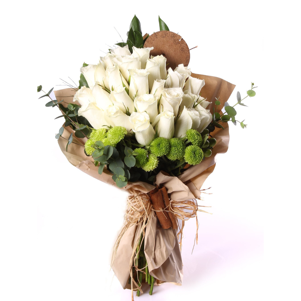 Celeste Rose, beyaz ve pembe güllerin eşsiz uyumuyla zarif bir atmosfer yaratır. Şıklığı ve zarafetiyle her özel gün için mükemmel bir hediye seçeneği sunar.