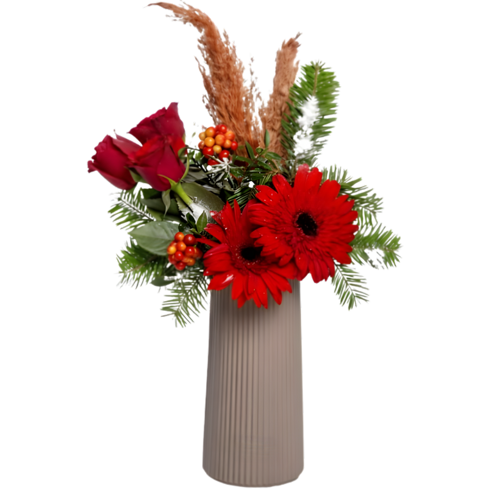 Red Frost – Bej Vazoda Kırmızı Çiçekler ve Kokina