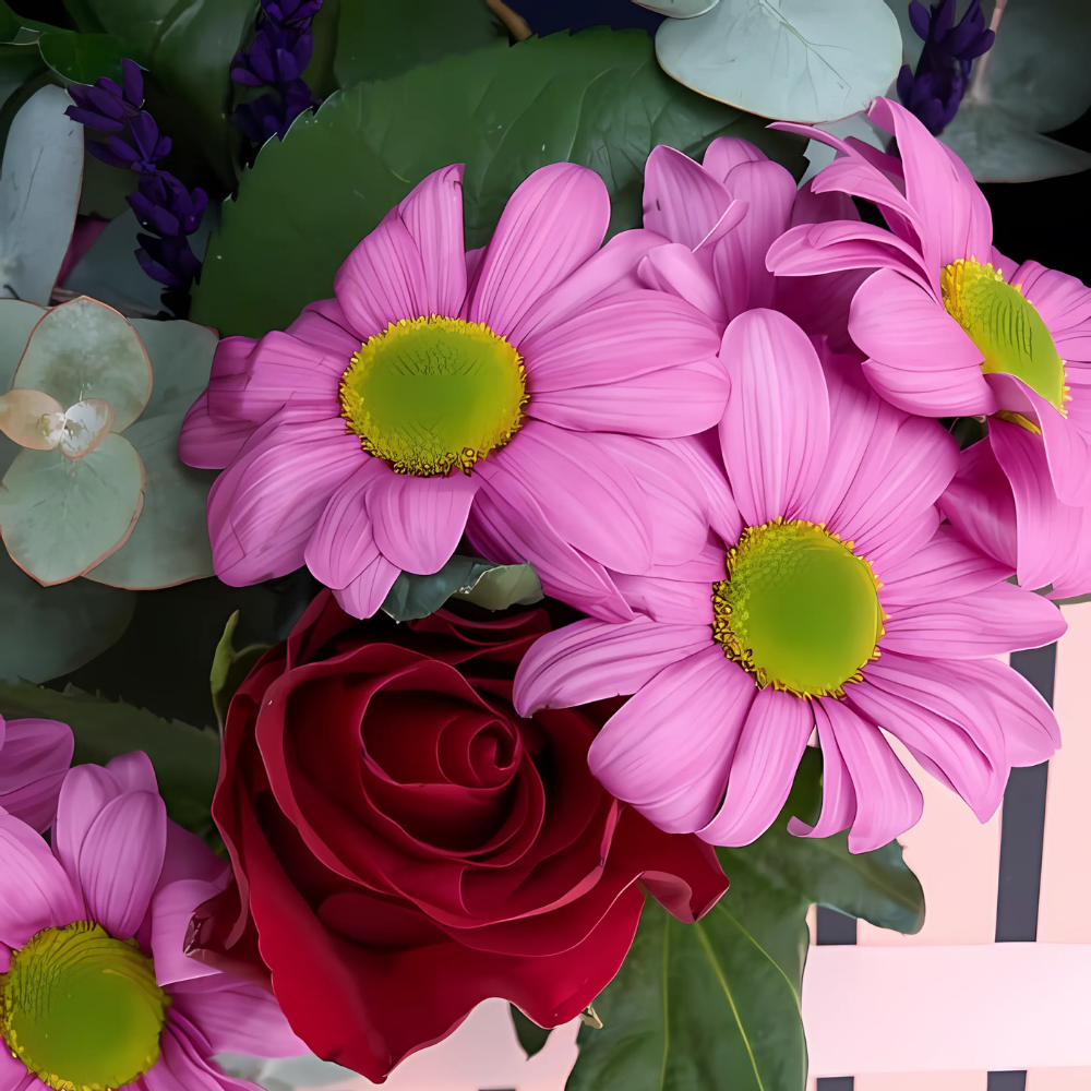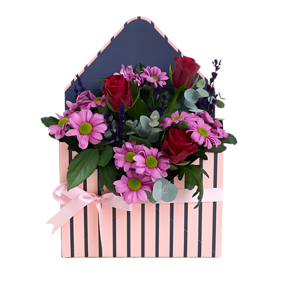 Zarf Rouge – Mor Zarf Kutuda Kırmızı Gül ve Pembe Papatya